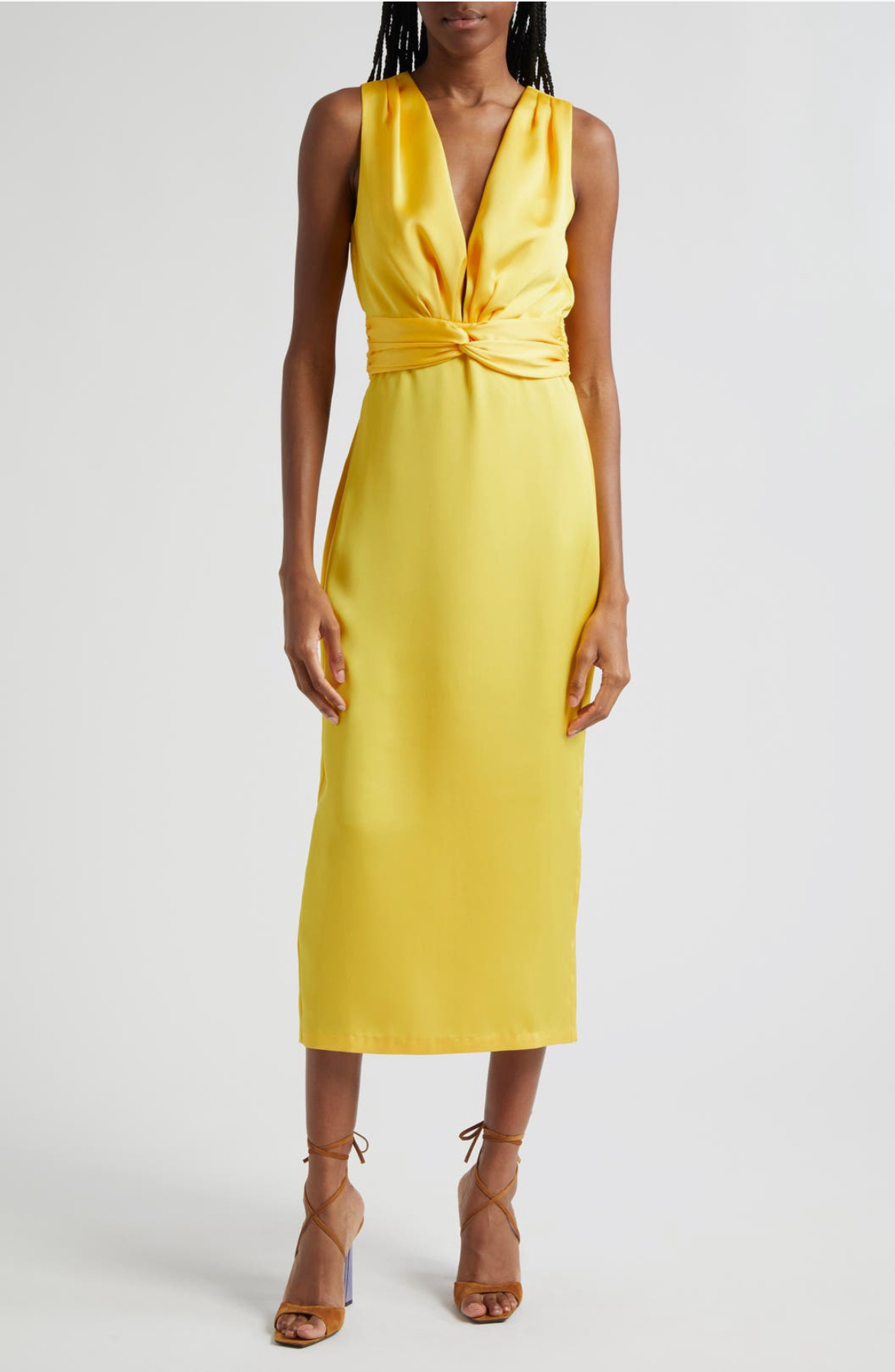 Another great Wedding Guest dress in a pretty shade of lemon yellow. Add a pashmina, clutch and heels.