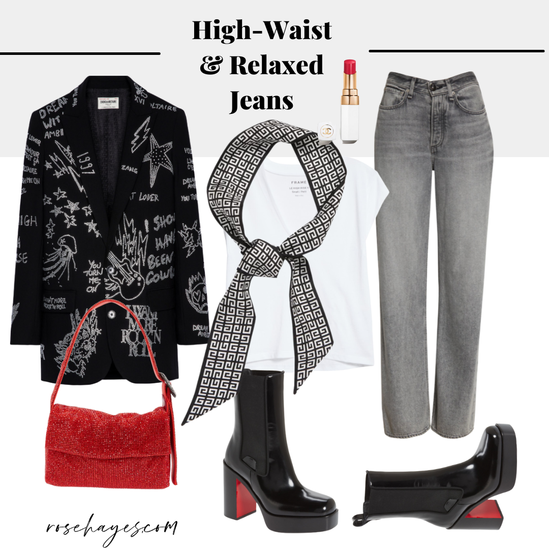 With so many conflicting opinions on what is and is not on trend, here is my RoseKnows take on the skinny denim debate. If you have dark blue, gray, white or black high rise skinny jeans (with no rips or holes) – keep them. You might have heard that skinny jeans are no longer trending but as your personal stylist, I say that if they are flattering on your shape, they will continue to be a staple. Skinny jeans continue to be the number 1 selling style and most women still love them. Wear skinnies with an oversized top or jacket, add loafers, mules, sneakers or tuck into tall boots . Think of them as you would wear leggings or stirrup pants.
