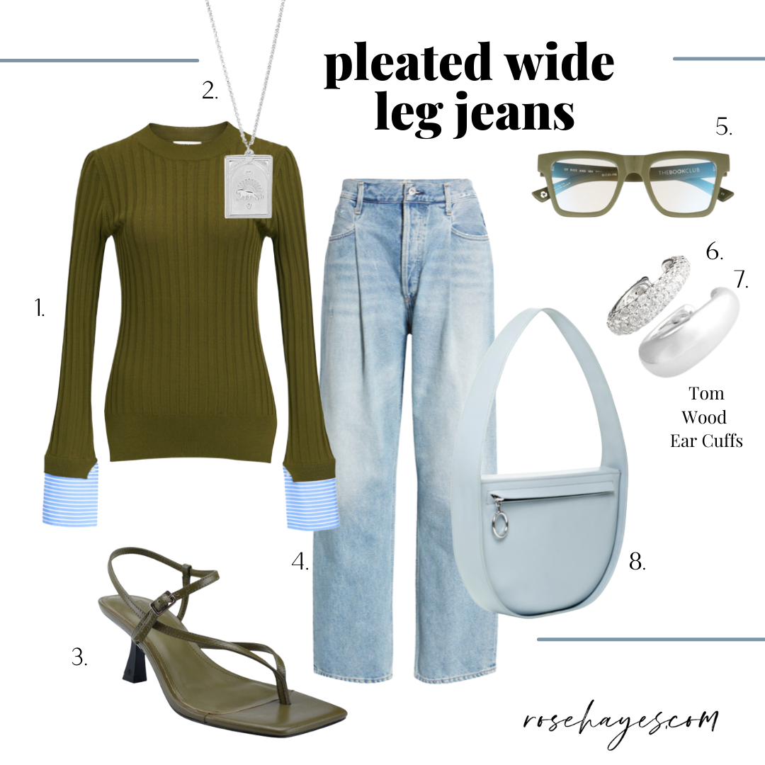Novelty detailed denim such as a split hem style like these by Good American or a cross over waist like these from Agolde are going to make heads turn and beg the question… WHERE DID YOU GET THOSE? Answer: Rosehayes.com 🙂 My next denim purchase will be the pleated jeans below.