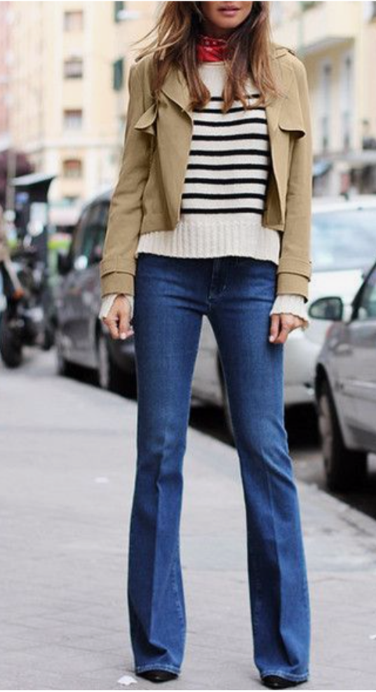 High-Rise Flare and boot cut jeans are hands down the most flattering fit because the slight flare at the bottom balances your hips and make your legs look long and skinny. Need I say more?