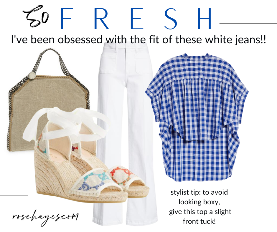 I tried these Paige wide leg white jeans for a virtual appointment and knew I had to have them myself. I plan to wear them 24/7 ! The wide leg looks a little dressier to me so I’ll be wearing these with a little heel and reserving my other white jeans for sneakers and flat slip on sandals. Perfect for daytime or an evening get together. I would grab these asap because I noticed some sizes have already sold out! *Stylist tip: Many of my clients go up a size when wearing white, so if you’re on the fence with your size error on the bigger size when it comes to white jeans or pants.