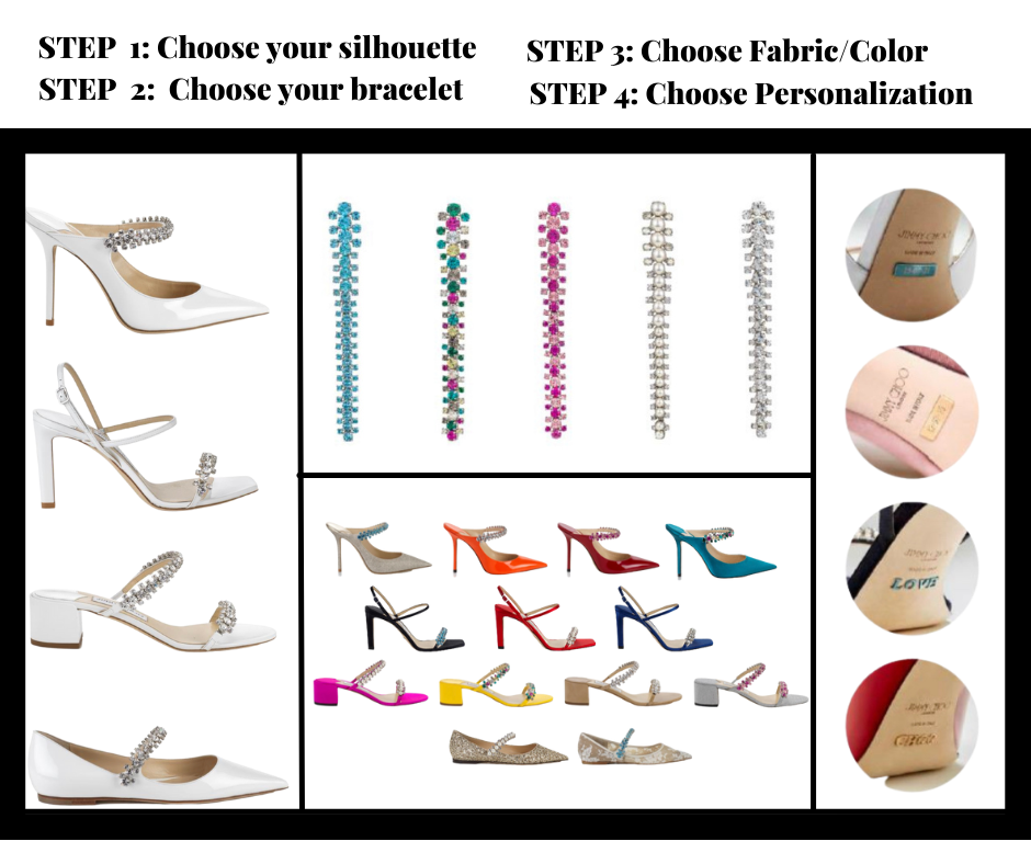 Check out the styles, colors and crystal bracelet Jimmy Choo MTO options.