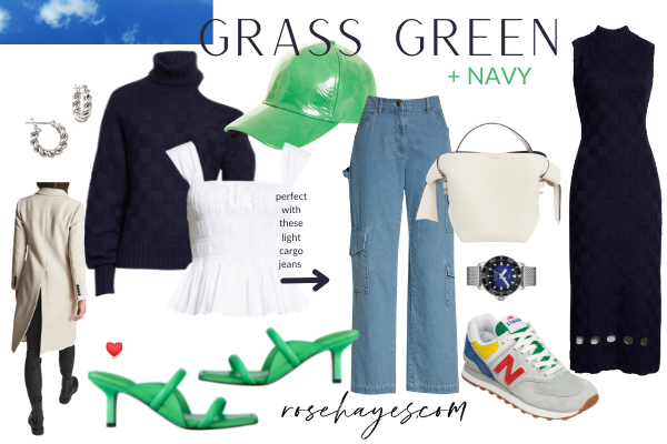 If you haven’t noticed, Grass GREEN is huge and everywhere right now! This color combo is so fresh, don’t you think ? Both the navy cut out turtleneck sweater and the sleeveless sweater dress are the same fabric as the navy “Bottega weave” short sleeve sweater above! I’m a fan of all 3 but would prob go with the dress now going into spring. Add a white denim jacket like this one by Alice & Olivia over the sleeveless navy sweater dress, perfect!