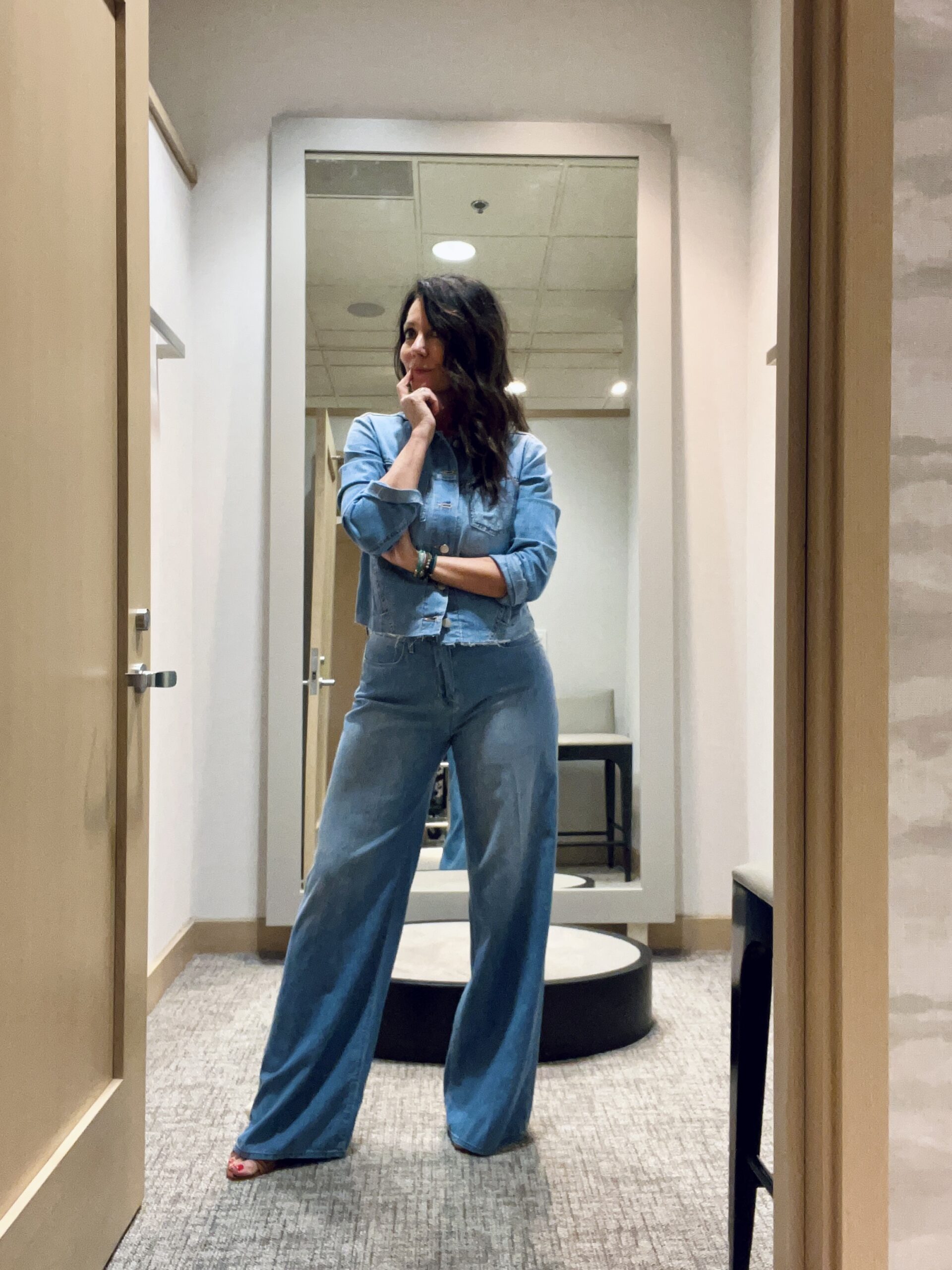 This category is a constant ask from customers. Whether it’s a going-to-dinner blouse, a work shirt or a cute Friday night top, we all need more tops! How cute is this one by Sea below?! Wear it with jeans and a sandal or a heel. This formula consists of denim + white cute top and works all summer!