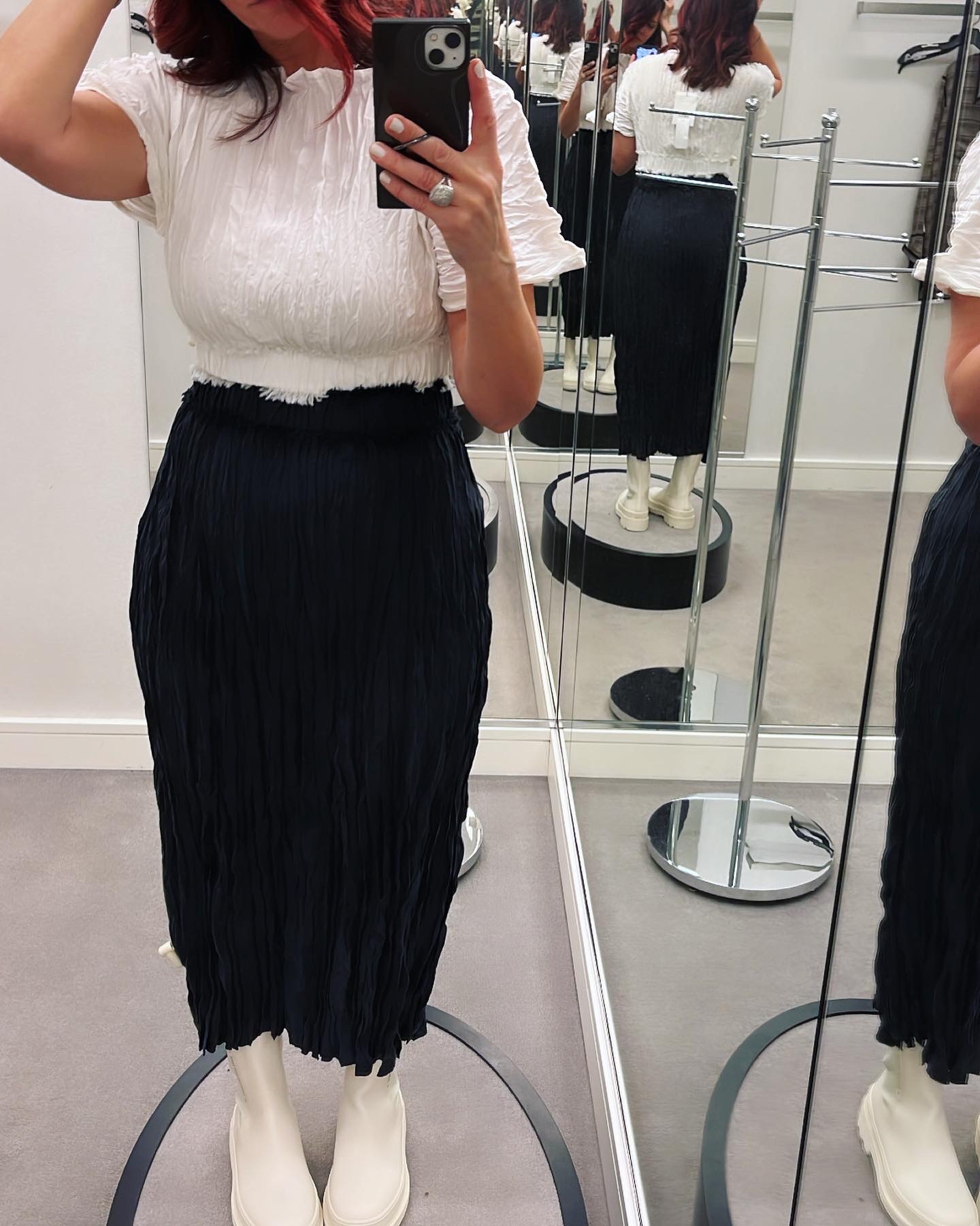 This clean and minimal brand reminds me of a well traveled chic woman that believes in quality over quantity. Totem pieces are polished and sophisticated. I was super excited to see the line in person here at Fashion Square. Here is a sneak peak of my try on session that sparked the idea for this blog post: