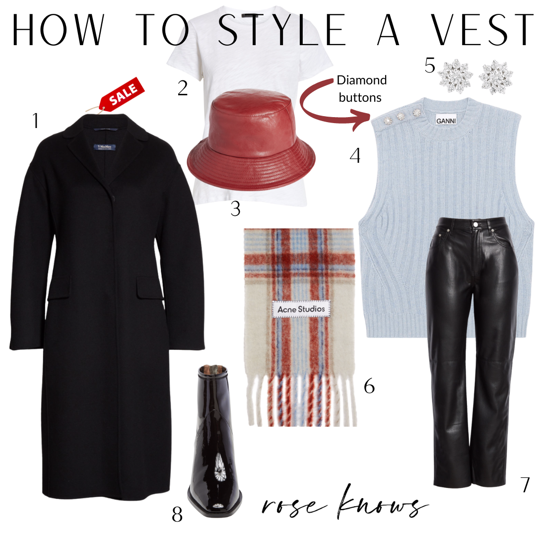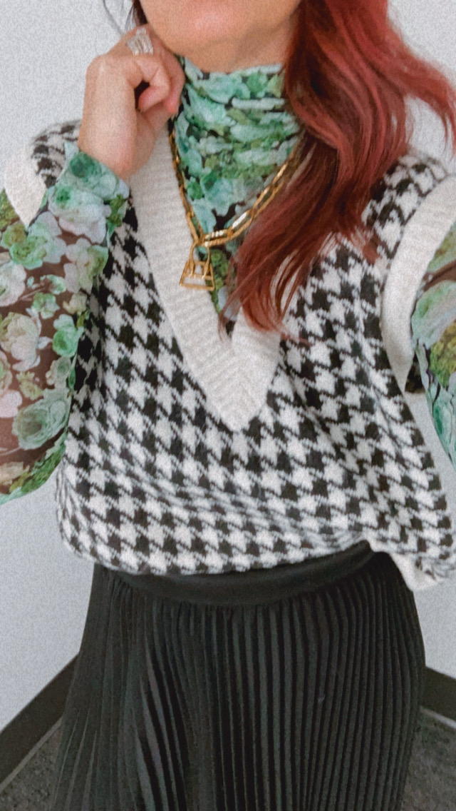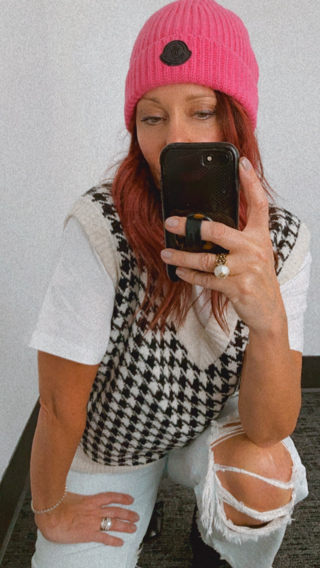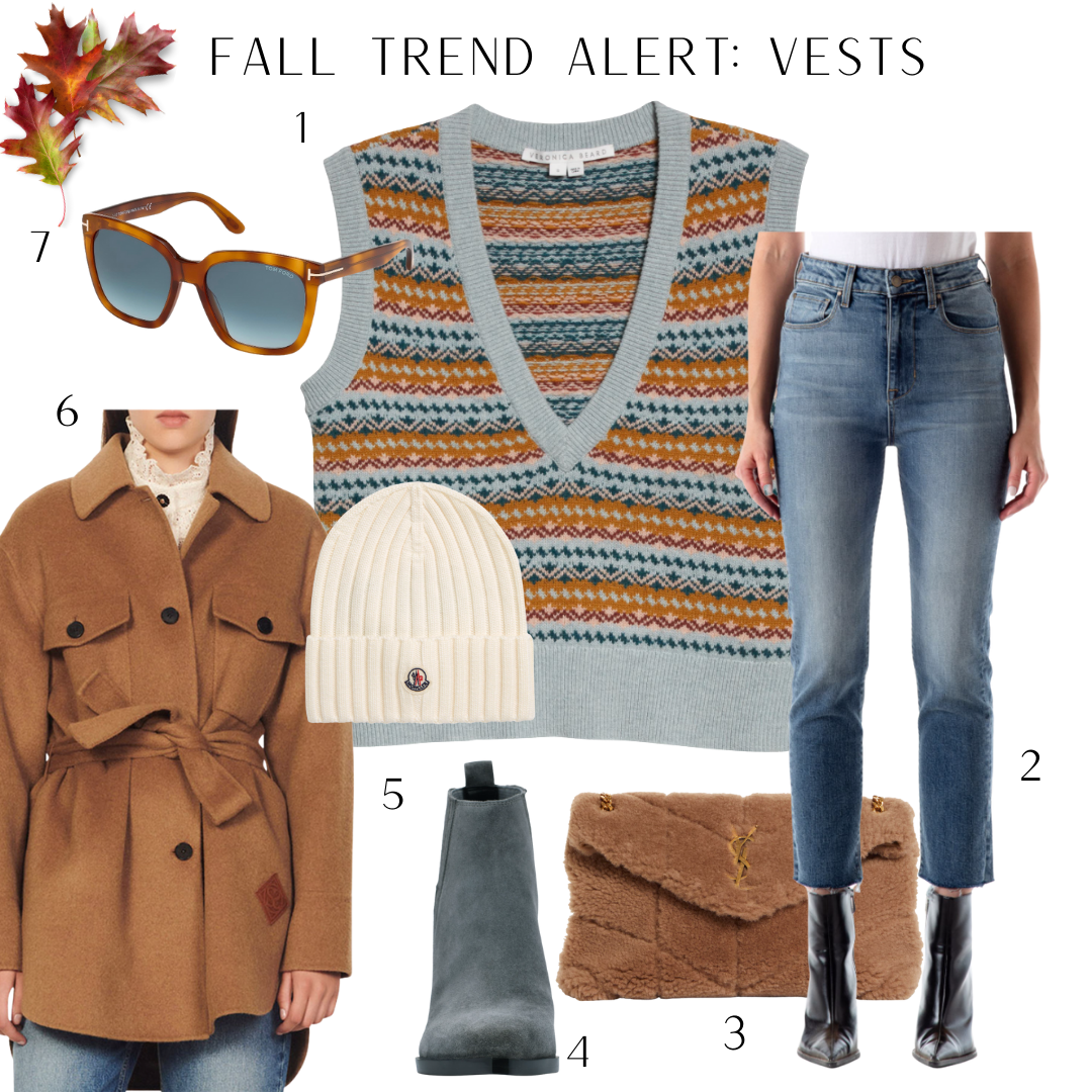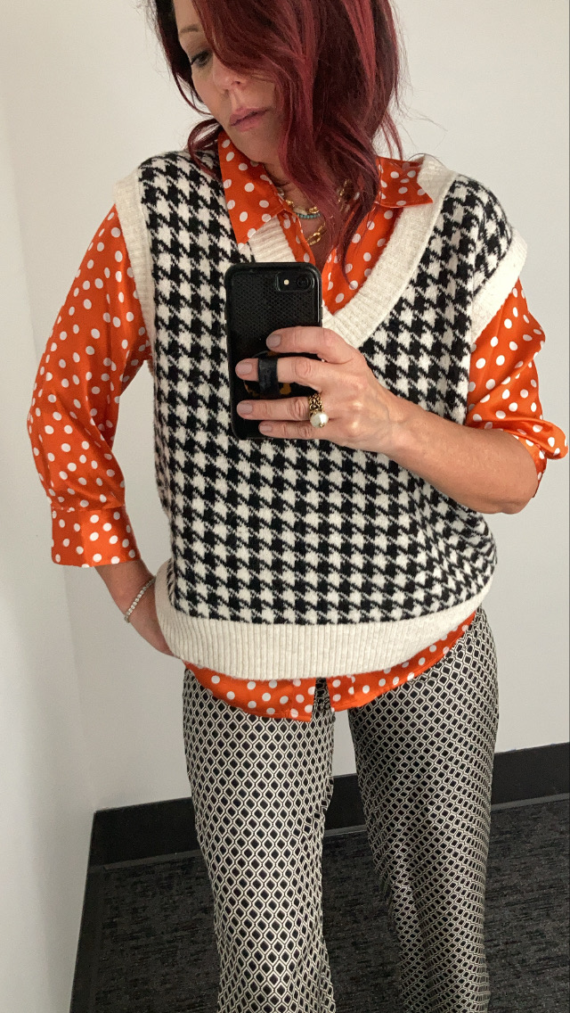 VESTS: This trend is a classic that technically is trending not trendy. While the weather is still warm, trying wearing one with nothing under, add great comfy boyfriend jeans like these here. All the cool girls are wearing vests over their white shirt dresses like this one here from Ganni. Try layering yours over everyones favorite VINCE slip dress here. You may have seen my vest reel on my instagram page a few weeks ago where I pushed the envelope mixing patterns (see photos above). Last checked, this houndstooth check vest was only available in large(I’m wearing XL for reference) – but no worries I’ve linked more in the shop the post below and in the following two style boards.