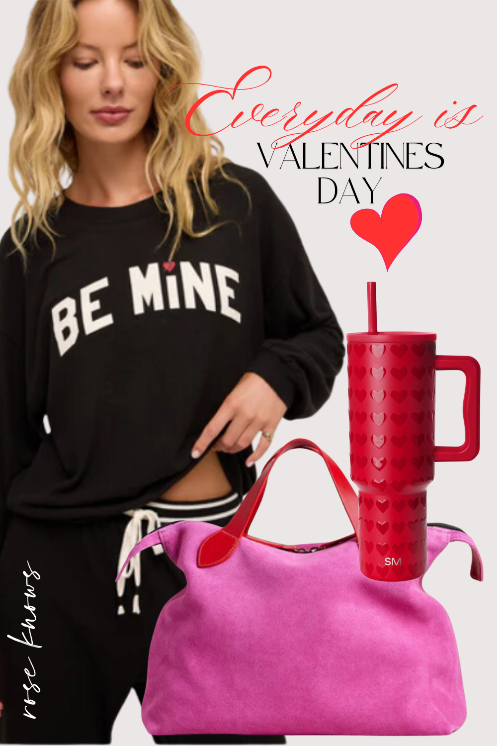 Sweatshirt + Pant | Pink Suede Bag | Red Hearts Water bottle