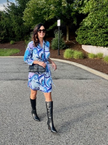 < Wearing L’Agence dress, Balenciaga Bag, Vince Camuto Boots