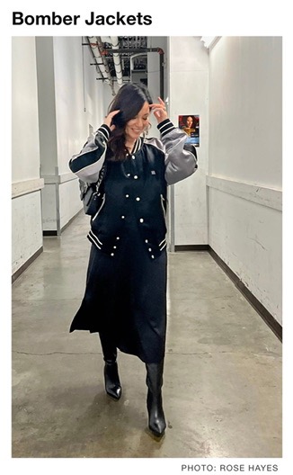 I’ve had requests for retro Varsity and Bomber Jackets lately. For my uber fashionista clients, I’ve been showing oversized Varsity jackets paired with evening wear. It’s so unexpected and we’ve been loving the juxtaposition of an oversize silk or leather bomber jacket paired with dressy delicate fabrics.